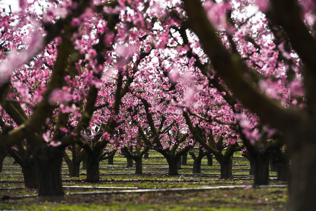magen de archivo: Árboles de durazno en flor en un huerto de Aitona, el 5 de marzo de 2021 (Pau Barrena/ AFP vía Getty Images)Explotación ecológica
