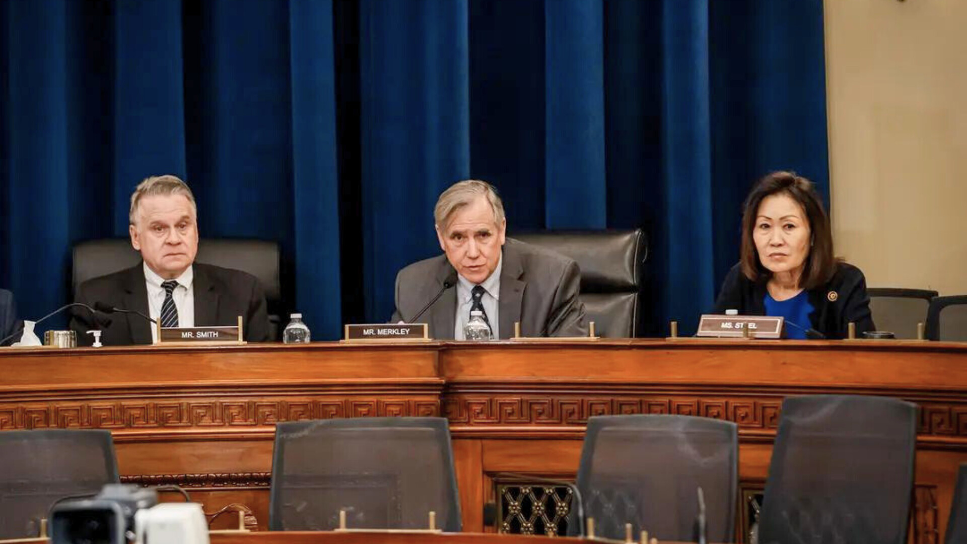 (De izquierda a derecha) El presidente de la Comisión Ejecutiva del Congreso sobre China, el representante Chris Smith (RN.J.), el senador Jeff Merkley (demócrata por Oregón) y la representante Michelle Steel (republicana por California) durante una audiencia sobre la Sustracción forzada de órganos por parte del Partido Comunista Chino, en Washington el 20 de marzo de 2024. (Madalina Vasiliu/The EpochTimes)«Complices silenciosos»