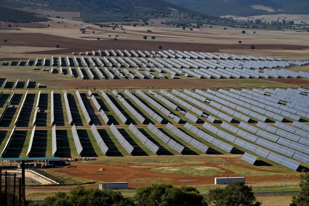 Esta fotografía tomada el 6 de julio de 2023 muestra el parque solar fotovoltaico Picon I, un proyecto de energía solar fotovoltaica de 50 MW propiedad de la empresa española Naturgy y desarrollado por ella en Porzuna, en la región de Castilla-La Mancha. (Oscar del Pozo/AFP a través de Getty Images)Dependencia China