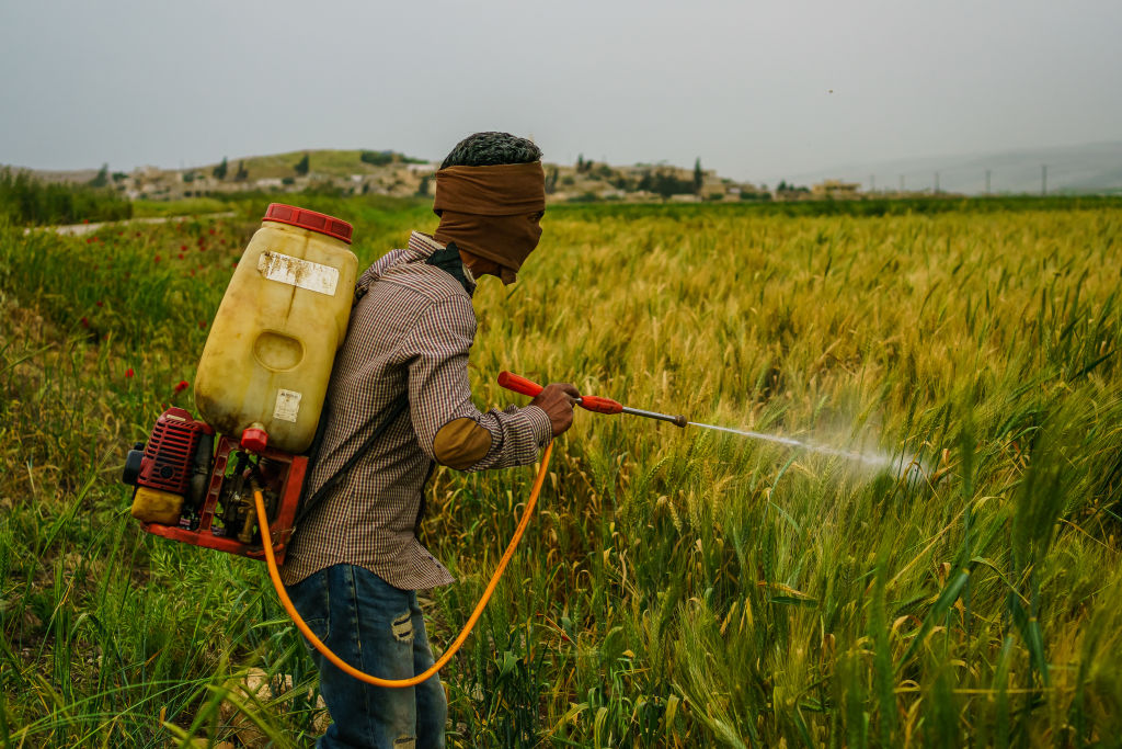 Un agricultor sirio rocía pesticidas en los campos de trigo de las tierras de cultivo de la llanura de Al-Roj, en la zona rural occidental de la provincia de Idlib, en el noroeste de Siria, el 27 de abril de 2024. (Moawia Atrash / Middle East Images / Middle East Images vía AFP vía Getty Images)El 1,3-dicloropropeno (o 1,3-D) está clasificado como probable carcinógeno por la Agencia de Protección del Medio Ambiente de Estados Unidos (EPA por sus siglas en inglés). La agencia le atribuye un buen número de efectos agudos, pulmonares y digestivos, así como efectos crónicos a largo plazo.
