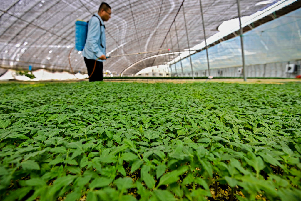 Un empleado rocía pesticidas en una base de cultivo de plántulas en Qingzhou, en la provincia de Shandong, al este de China, el 22 de mayo de 2024. (STR/AFP a través de Getty Images)Efecto «boomerang»