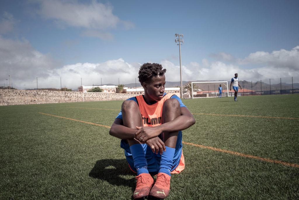Menores migrantes entrenan como parte del proyecto de fútbol Sansofe (Bienvenido), en la isla canaria de Tenerife, el 17 de octubre de 2023. (Desiree Martin /AFP via Getty Images)100 millones de euros para 2025