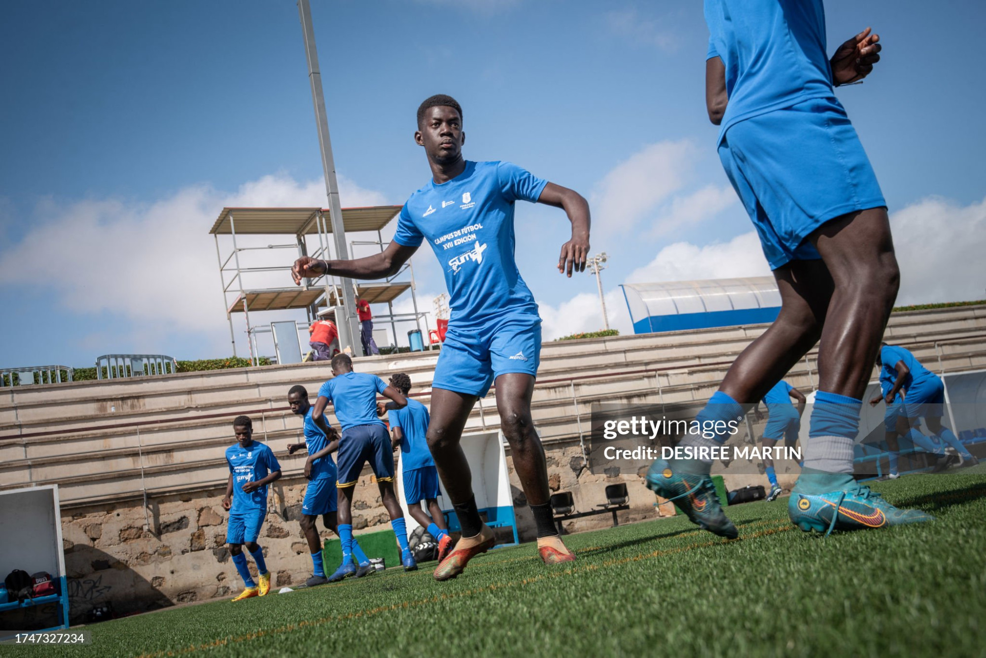 El senegalés Mamadou Ndoye, de 17 años, asiste a una sesión de entrenamiento como parte del proyecto de fútbol Sansofe (Bienvenido), en la isla canaria de Tenerife, el 17 de octubre de 2023 (Desiree Martin /AFP a través de Getty Images)Supuestamente, esto «limita la llegada de menores no acompañados destinados a Cataluña», que recibiría entre 20 y 30 de los 4.000 que se encuentran actualmente en Canarias, mientras que Madrid acogería a más de 700.