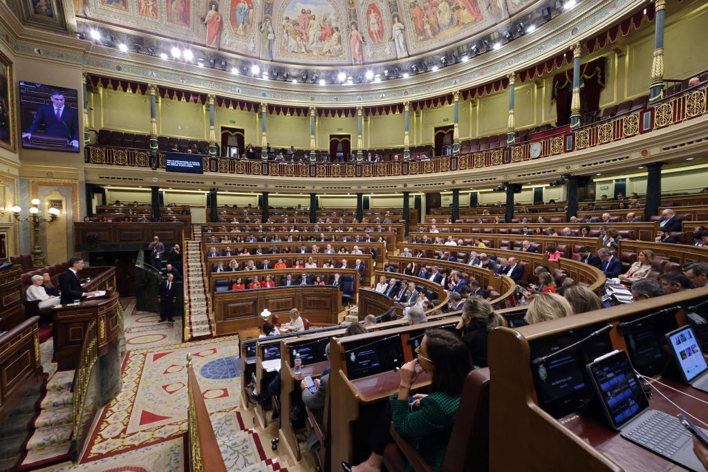 El presidente del Gobierno, Pedro Sánchez, se dirige al parlamento en la cámara baja española, el Congreso de los Diputados, en Madrid, el 10 de abril de 2024. (Thomas Coex/ AFP vía Getty Images)Propuestas
