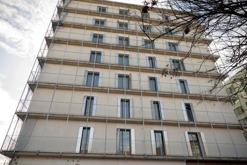 Un edificio destinado a viviendas sociales de alquiler asequible, el 13 de febrero de 2025, en Sant Boi de Llobregat. (Josep Lago / AFP vía Getty Images)Falta de vivienda y temor en la población