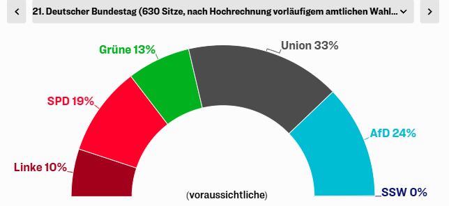La AfD duplicó su resultado de un 10,4 % a un 19,5-20 %. Hasta el momento, nadie quiere formar coalición con ellos. Incluso el ganador de las elecciones, Merz, que recientemente logró una resolución sobre migración en el Bundestag con la ayuda de la AfD, está tratando de ser claro. Su rechazo es «definitivo», afirmó incluso antes de las elecciones.
