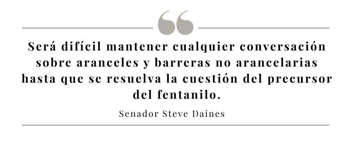 «Será difícil tener una conversación sobre aranceles y barreras no arancelarias hasta que se resuelva el problema del precursor del fentanilo», dijo.
