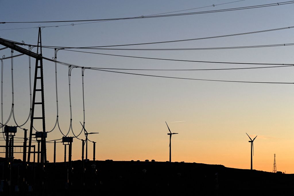 Las turbinas eólicas se ven junto a la subestación eléctrica de La Lora, en Villadiego, provincia de Burgos, el 4 de abril de 2023. (Oscar del Pozo/AFP a través de Getty Images)Galicia es una de las comunidades que está optando por la repotenciación.