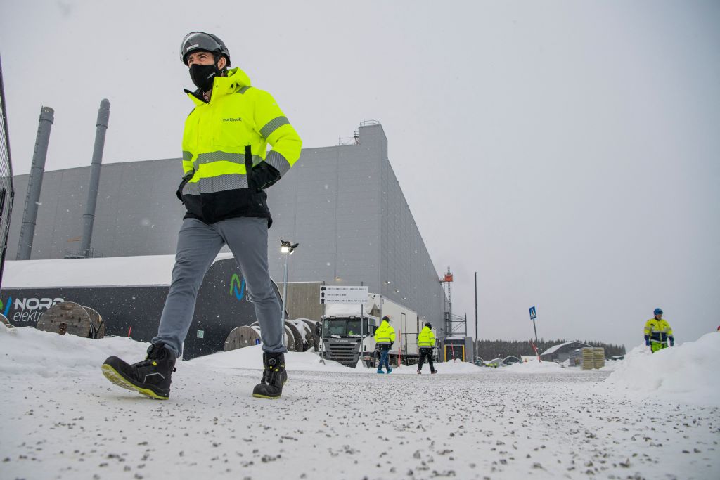 Trabajadores caminan por el emplazamiento de la fábrica de Northvolt Ett en Skelleftea, al norte de Suecia, el 23 de febrero de 2022. – Situada en Skelleftea, a unos 200 km del círculo polar ártico en Suecia, la Gigafábrica de Northvolt está destinada a producir baterías eléctricas para 600.000 vehículos al año. (Jonathan Nackstrand/ AFP vía Getty Images)Miles de millones en ayudas estatales