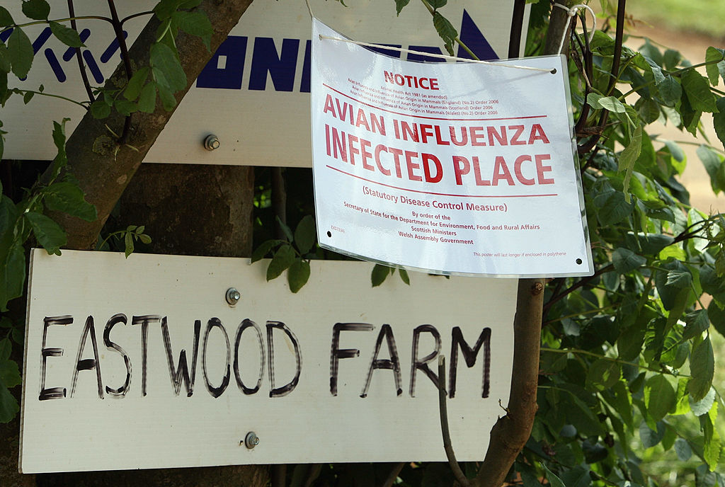 Un letrero advierte de un brote de la gripe aviar. (Matt Cardy/Getty Images)Hungría y Alemania registran el mayor número de eventos