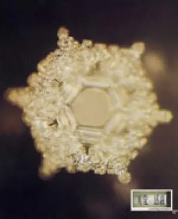 Se colocó una nota con las palabras «amor» y «gracias» en el recipiente con el agua que formó este cristal. Cortesía del Dr. Masuru Emoto.