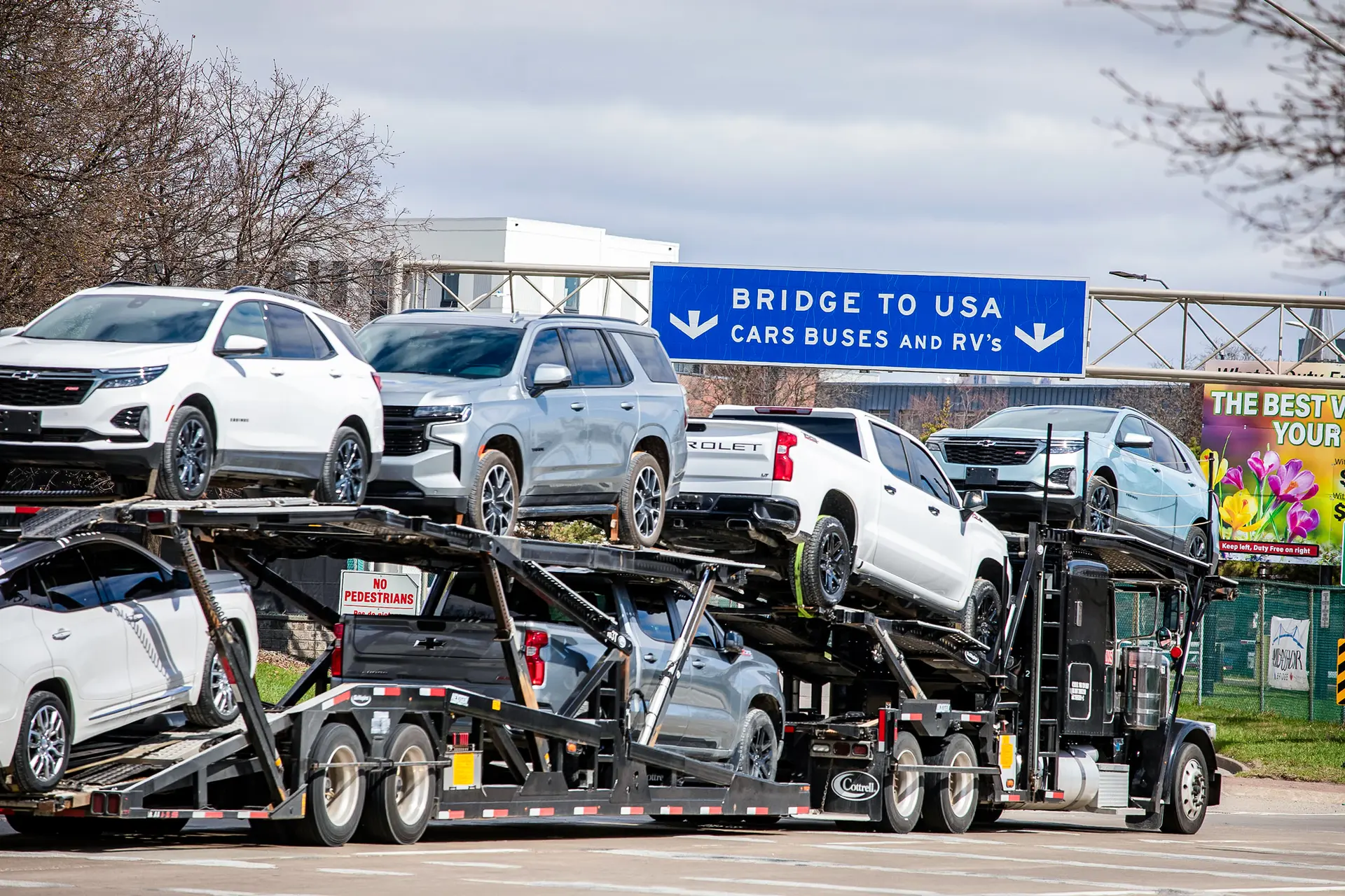 Un camión de transporte de coches se dirige al puente Ambassador para cruzar a Detroit desde Windsor, Canadá, el 1 de abril de 2025. El presidente Donald Trump se ha referido al 2 de abril como el «Día de la Liberación», cuando su administración comenzará a aplicar nuevos aranceles radicales a los bienes importados a Estados Unidos desde otros países. (Bill Pugliano/Getty Images)Las exenciones actuales para los bienes cubiertos por el acuerdo de libre comercio USMCA, implementado el 6 de marzo, también se mantienen. Canadá también recibió anteriormente un arancel reducido del 10 por ciento sobre sus exportaciones de energía, que permanece sin cambios.